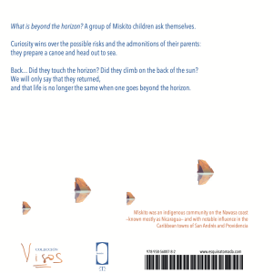 What is beyond the horizon? A group of Miskito children ask themselves. Curiosity wins over the possible risks and the admonitions of their parents: Back… Did they touch the horizon? Did they climb on the back of the sun? We will only say that they returned, and that life is no longer the same when one goes beyond the horizon.